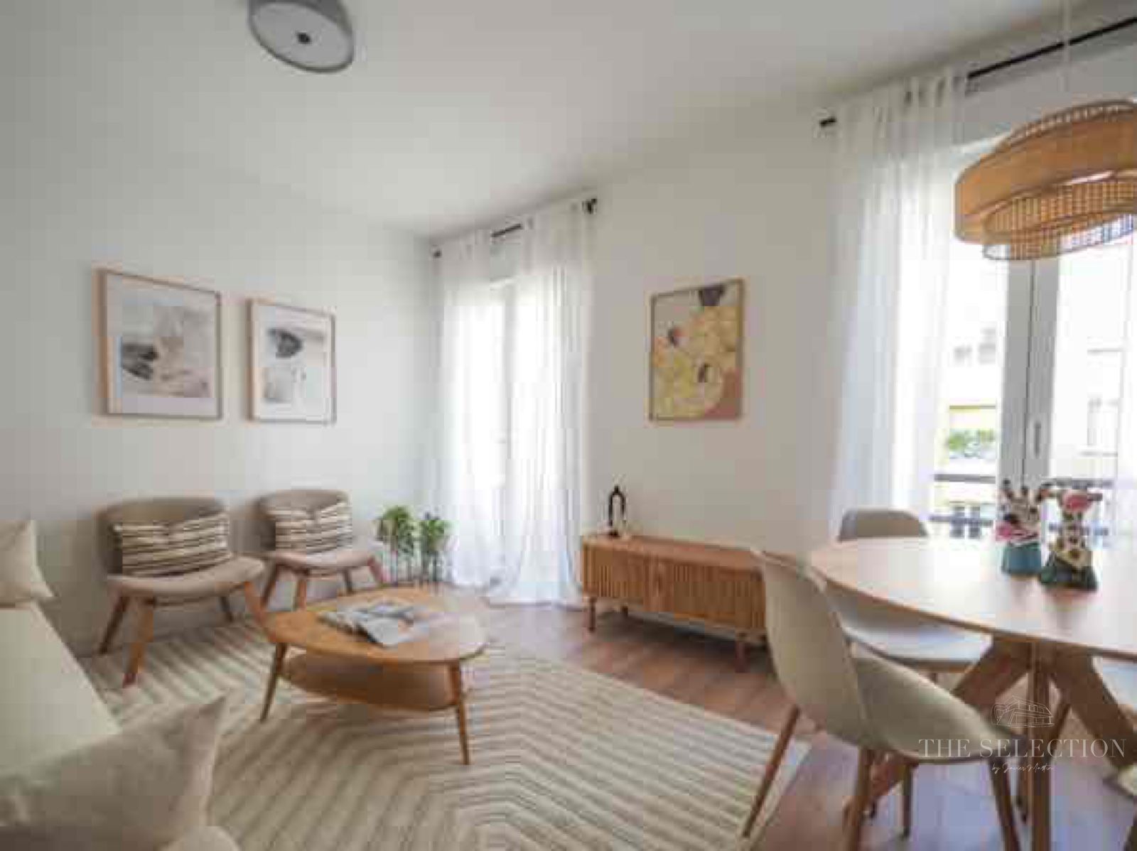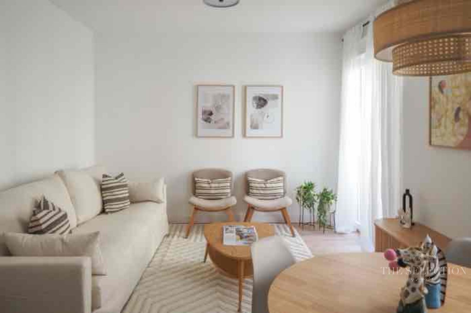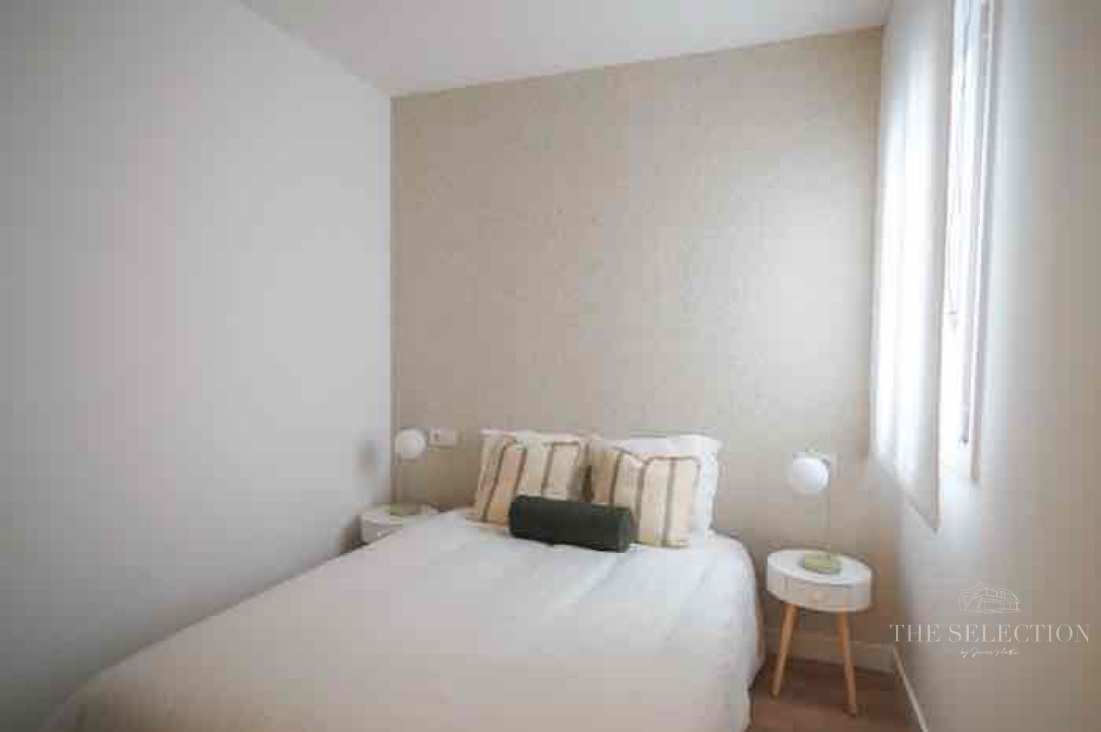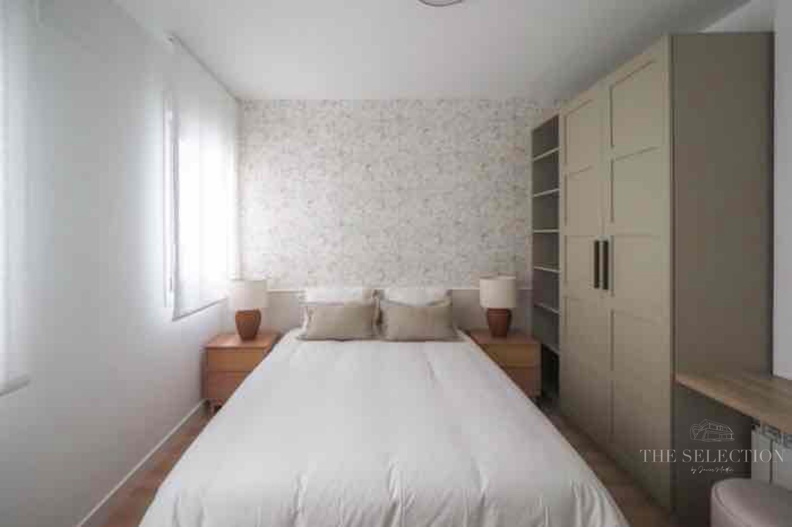 La vivienda cuenta con tres dormitorios bien diferenciados. El dormitorio principal dispone de baño en suite, garantizando privacidad e independencia. Los otros dos dormitorios, con buenas proporciones y ventilación natural, se adaptan tanto a uso residencial como a espacio de trabajo. El mobiliario, seleccionado específicamente para el proyecto, está integrado en el diseño y ayuda a maximizar el aprovechamiento de cada habitación.