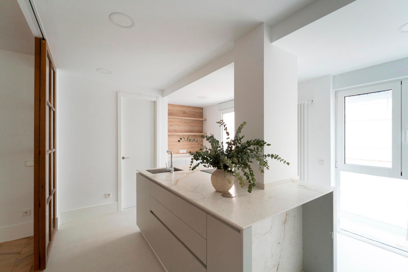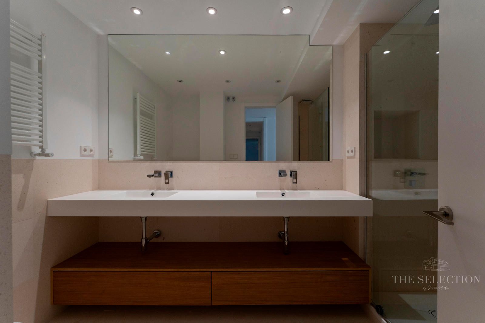 La propiedad ha sido completamente reformada con materiales de la más alta calidad, cuidando cada detalle para ofrecer un hogar elegante, luminoso y funcional. Destaca su suelo de roble natural colocado en espiga, que aporta calidez y sofisticación a todos los espacios. La vivienda cuenta con tres amplios dormitorios en suite, todos ellos con gran luminosidad y armarios empotrados. Dispone además de un aseo de cortesía, zona de lavandería independiente y una cocina moderna e independiente, que puede integrarse en la zona social mediante elegantes puertas correderas. El salón-comedor se abre a una amplia terraza con una acogedora zona de estar y comedor exterior, desde donde se pueden disfrutar vistas privilegiadas al Retiro.