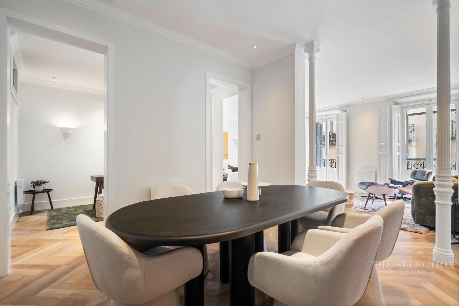 Cuenta con un gran salón comedor, con 3 balcones a la calle, uno de ellos mirador, y una espectacular vista a la Calle Fuencarral; una gran cocina con isla, 4 dormitorios y 2 cuartos de baño.