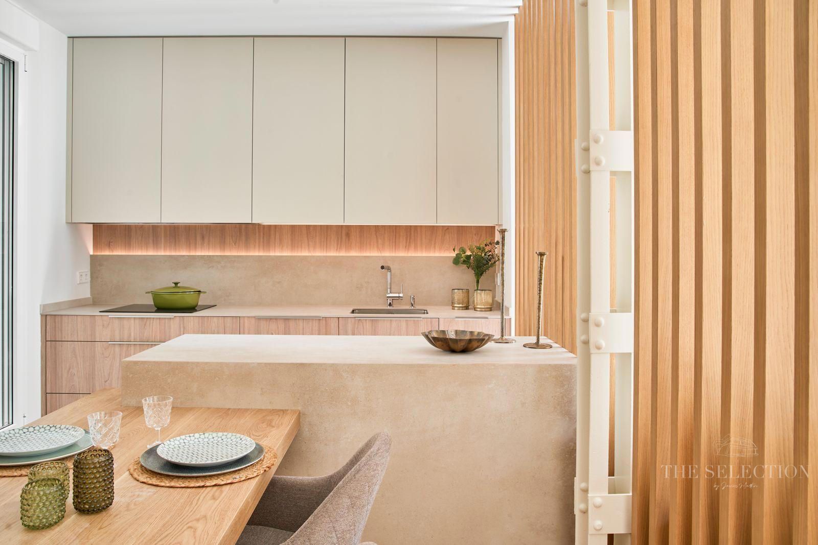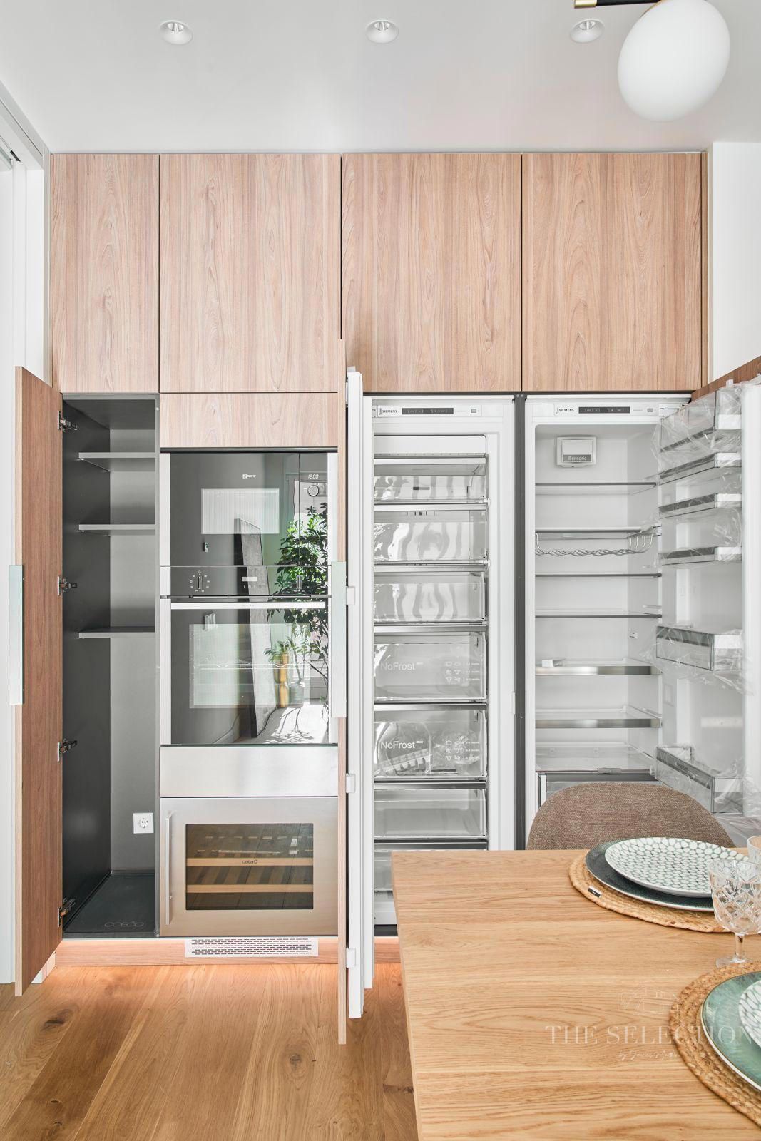 La vivienda, extraordinariamente luminosa, se sitúa en un edificio con un portal majestuoso que realza la distinción de la finca. En su interior, cada detalle ha sido cuidadosamente seleccionado: suelos en roble natural que aportan calidez y sofisticación, puertas lacadas de suelo a techo con un grosor y acabado impecables, y una cocina de diseño con 30 años de garantía que ofrece gran capacidad de almacenaje.