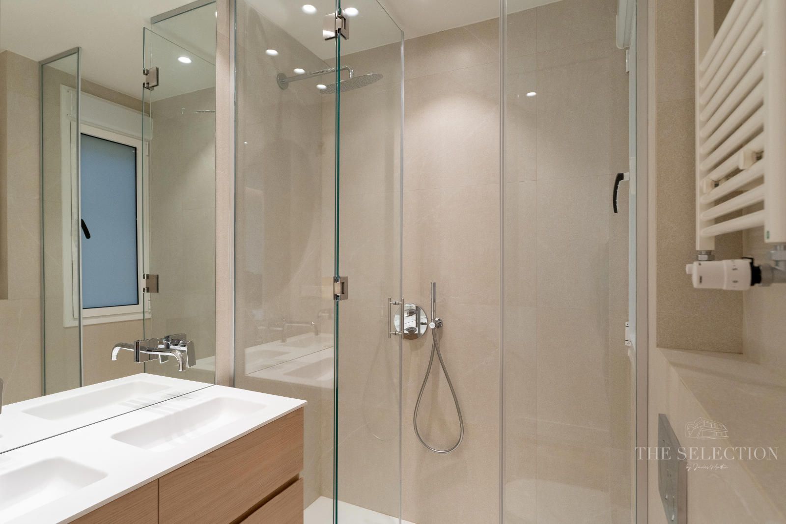 -Dos baños completos, ambos con ducha, acabados en gres porcelánico y mamparas abatibles de alta calidad.